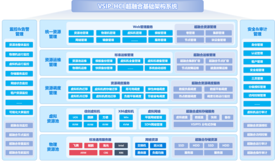 海誉云™ CloudBasis VSIP-HCI超融合基础架构系统(VSIP-HCI)是面向下一代数据中心软件定义云计算基础设施发展要求,基于稳定可靠、安全可控、运维高效的VSIP虚拟化基础架构系统,将自主VSIPFS超融合分布式存储与计算虚拟化、网络虚拟化功能集成到单一宿主服务器节点和资源池,每个宿主服务器节点都兼具计算和高性能可靠存储的能力。VSIP-HCI超融合基础架构系统可支持飞腾、鲲鹏、海光等标准信创芯片服务器和标准X86服务器,为用户构建标准化、模块化、高性能、高性价比的数据中心信创云基础设施。