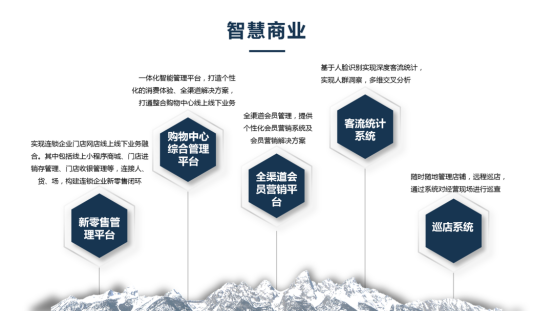 公司成立以来,以实体为依托,为响应政府大数据、始终致力于为客户打造新型的商业管理模式,在大数据、智慧交通、智慧商业、智慧金融、智慧警务等行业中均有极强的竞争力。