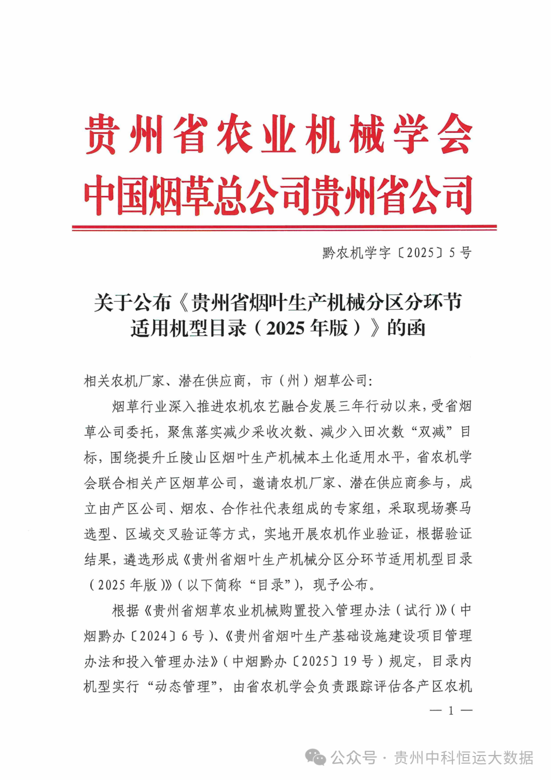 会员风采 | 喜讯!贵州中科恒运智慧农机产品成功入选《贵州省烟叶生产机械分区分环节适用机型目录(2025年版)》