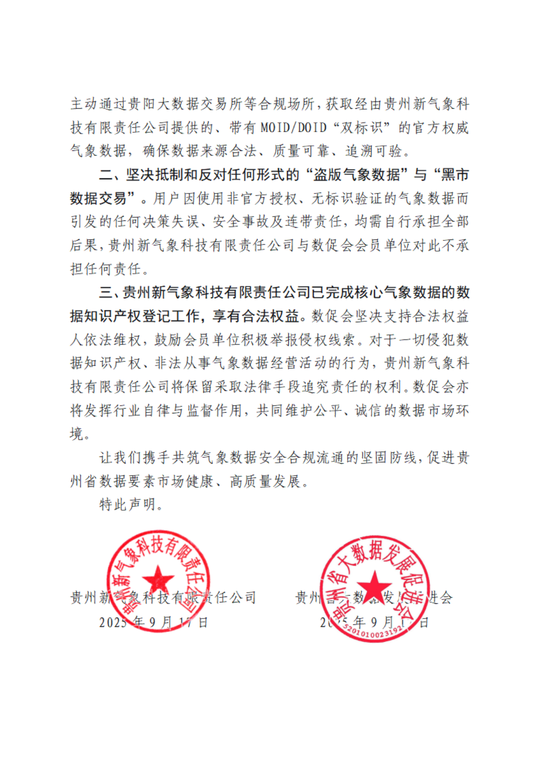 关于共同维护气象数据市场秩序的倡议与声明