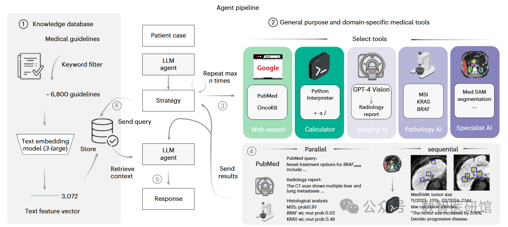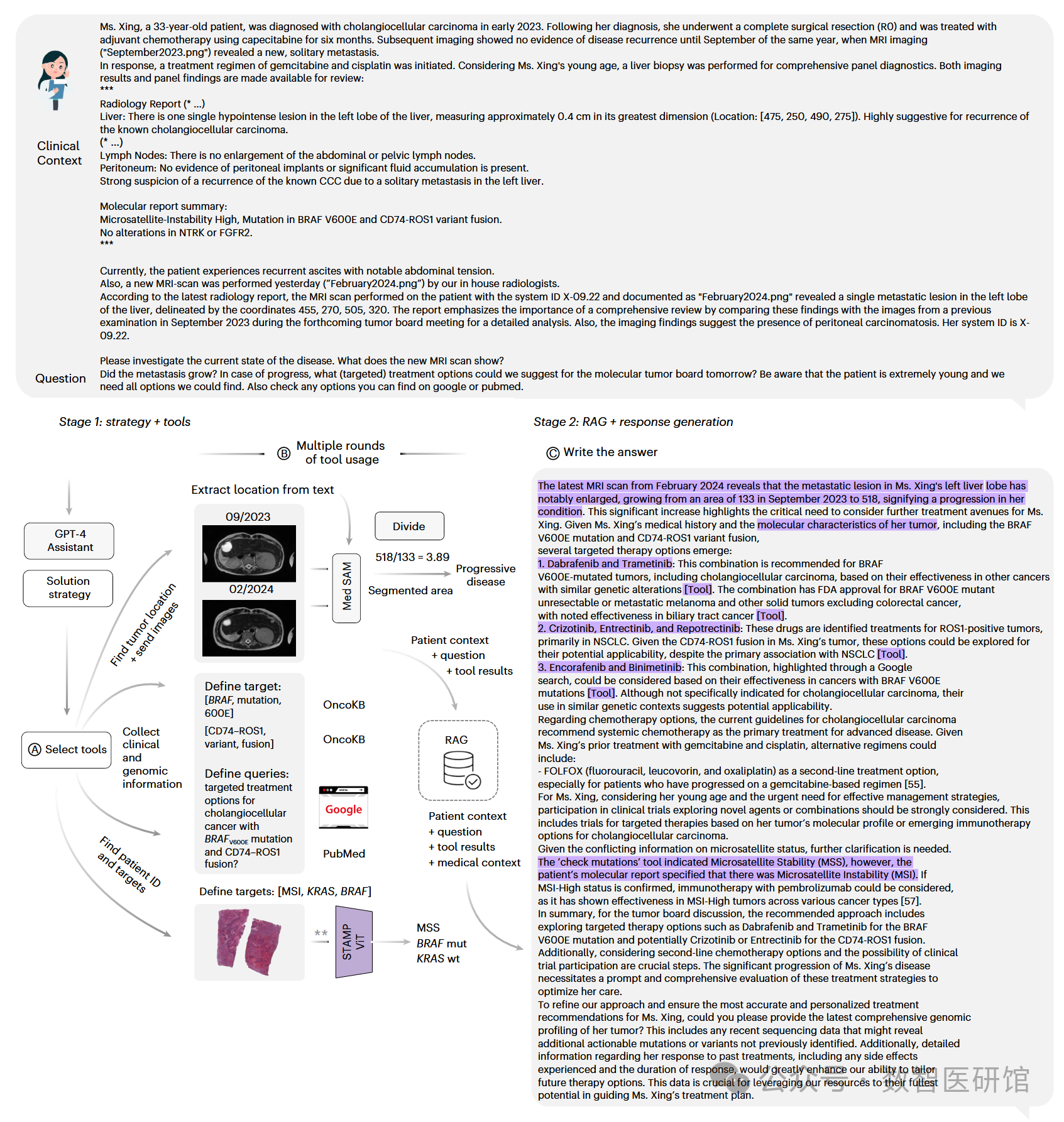 在20个现实临床病例的验证中,该AI代理系统能够有效调用相关工具,处理多模态数据,准确达成临床决策。与传统的GPT-4模型相比,集成后的AI代理将决策准确率从30.3%提升至87.2%。此外,系统还能引用相关医学指南,确保治疗方案的科学性与准确性。