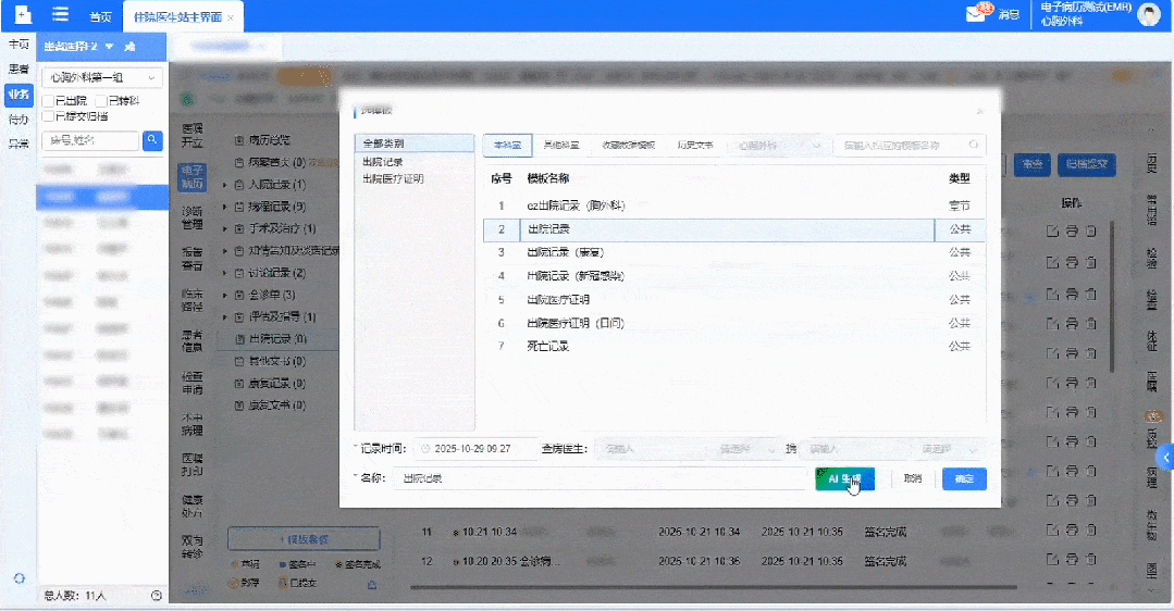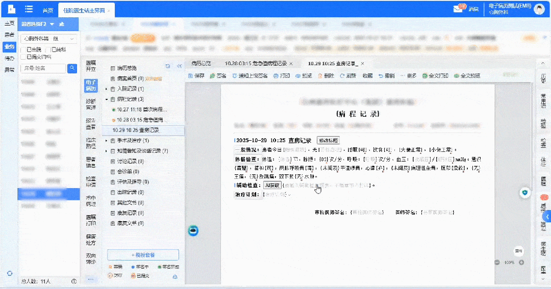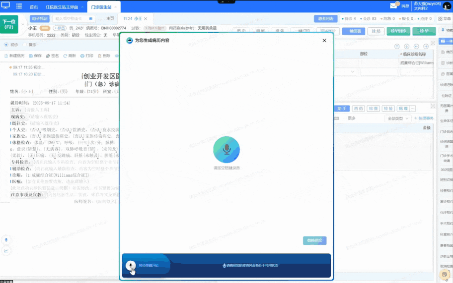 智能病历书写:根据医患对话录音或关键信息,自动生成符合规范的门诊病历、入院记录、手术记录等,医生只需修改确认即可。