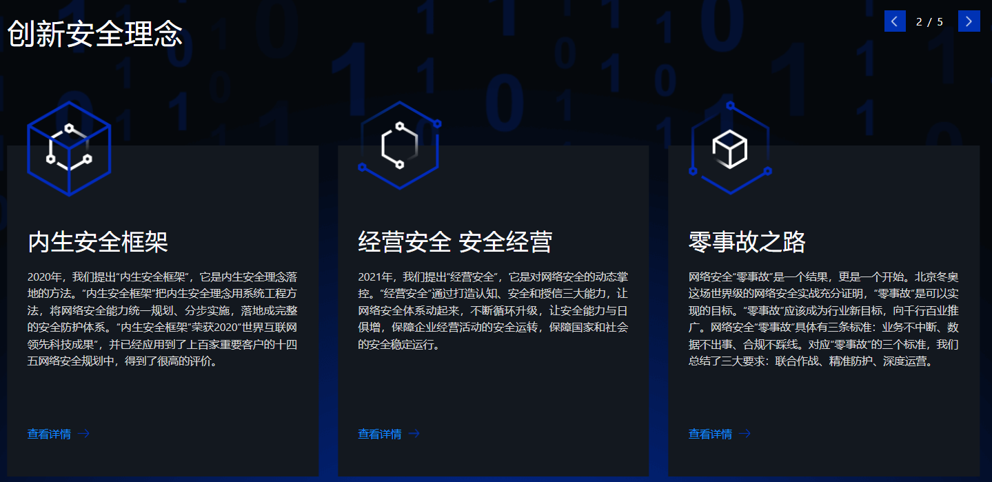 作为网络安全国家队,奇安信立志为国家构建安全的网络空间。安全理念方面,奇安信提出的“数据驱动安全”“内生安全”“经营安全”“网络安全零事故目标”“数智安全”“AI驱动安全”等先进理论,成为国内网络安全和数据安全发展新的风向标,为网络安全技术进步做出了突出贡献。技术能力方面,奇安信在终端安全、云安全、威胁情报、态势感知等领域的技术先进性及市场占有率排名持续领先;业务领域方面,奇安信是全领域覆盖的综合型网络安全厂商,连续多年蝉联《网络安全行业全景图》入选最多企业;在中国网络安全产业联盟(CCIA)发布的 2021 年、2022 年、2023 年、2024 年“中国网安产业竞争力五十强”榜单中,奇安信连续四年排名第一。