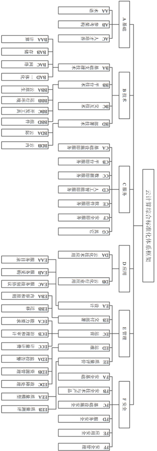 云计算标准体系框架主要由基础、技术、服务、应用、管理和安全6个部分组成,如图2所示。