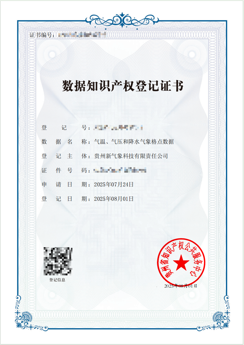 本次作价入股的数据知识产权——“气温、气压和降水气象格点数据”,空间分辨率达1公里,针对贵州全省20年来气象连续观测数据,通过变分融合分析技术,形成高精度气象数据产品,主要用于防灾减灾、能源调度、农业生产等关键领域。